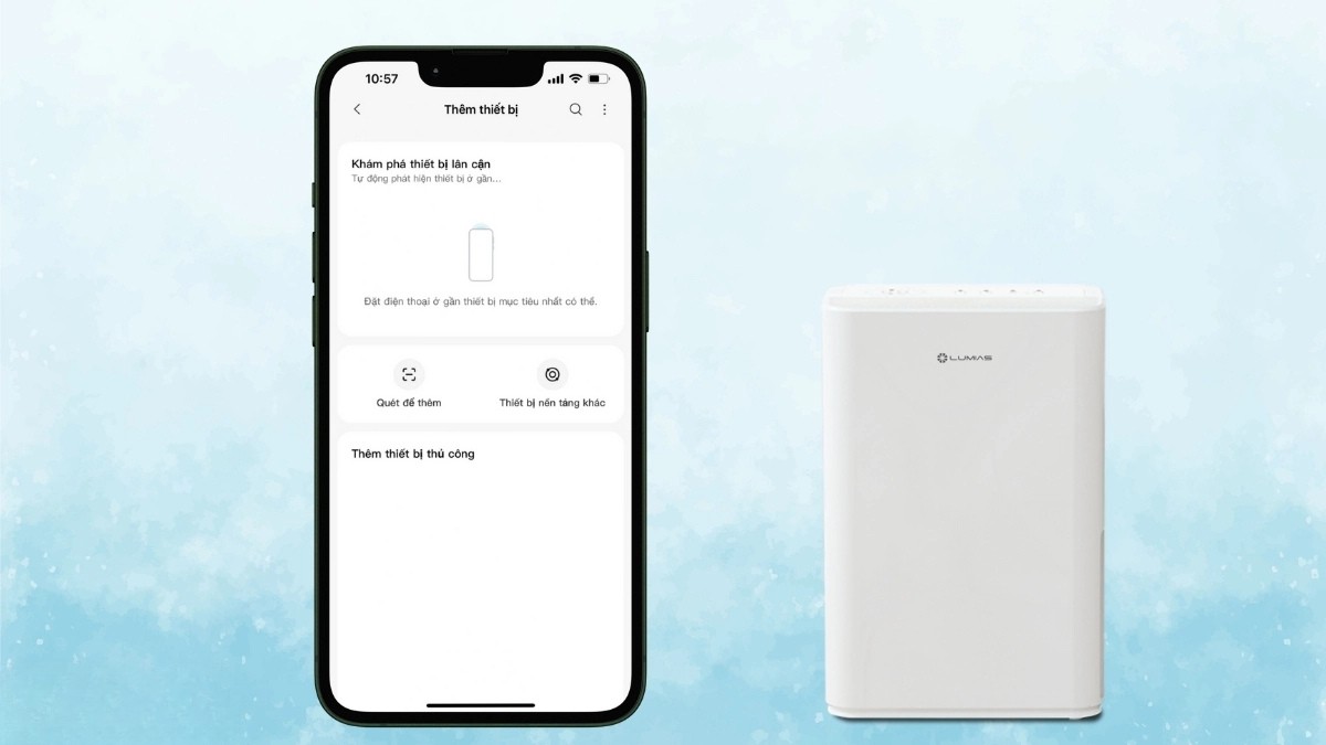 Để quản lý và điều khiển máy hút ẩm Lumias D6S-12L từ xa, người dùng có thể kết nối thiết bị với ứng dụng MiHome trên điện thoại. Quá trình cài đặt và kết nối khá dễ dàng và nhanh chóng chỉ với vài bước.