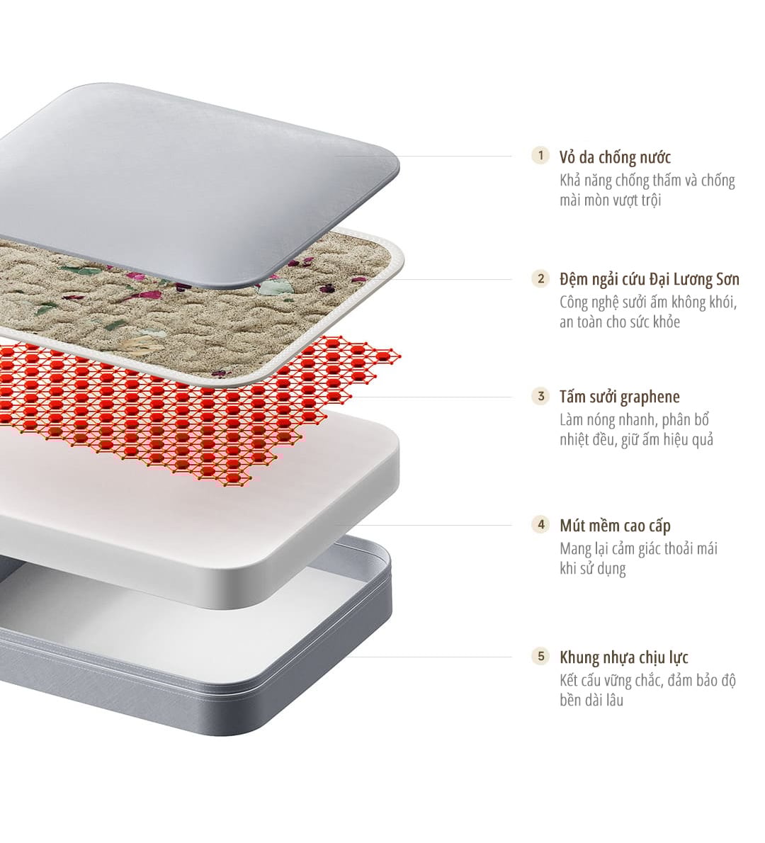 Ghế đôn tích hợp sưởi nhiệt graphene kết hợp chườm ngải cứu, mang lại cảm giác ấm sâu và thư giãn (nâng cấp so với phiên bản X5 cũ).