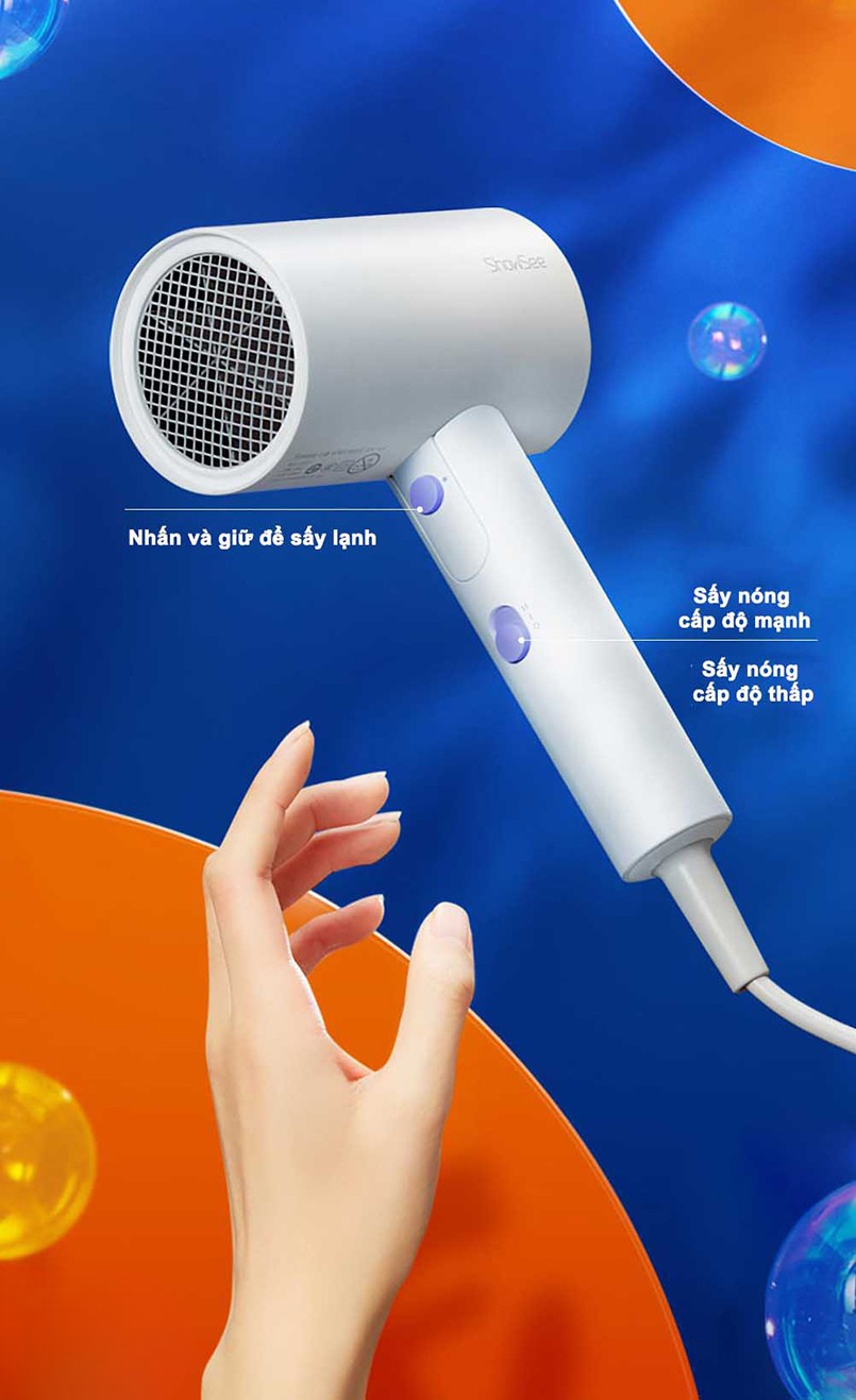 Máy sấy tóc Showsee A4-W được trang bị vòi sấy hẹp có thể tháo lắp nhanh chóng và xoay 360°, giúp bạn dễ dàng tạo nhiều kiểu tóc đẹp chỉ trong thời gian ngắn. Bên cạnh đó, thiết bị còn hỗ trợ hai chế độ sấy nóng và sấy lạnh chuyển đổi linh hoạt: sấy nóng giúp làm khô tóc nhanh và tạo kiểu hiệu quả, trong khi sấy lạnh lại mang đến sự mềm mượt, bảo vệ tóc tốt hơn.