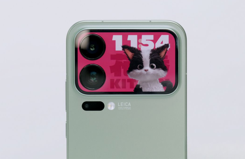 Điểm nhấn là màn hình phụ AMOLED 2.9 inch tích hợp trong cụm camera sau, có độ phân giải 976 × 596 pixel, tần số quét 120 Hz và độ sáng tối đa 3.500 nit. Màn hình này có thể hiển thị thông báo, đồng hồ, trạng thái pin hoặc hoạt động như khung ngắm khi chụp selfie bằng camera sau — mang lại trải nghiệm vừa độc đáo vừa tiện lợi.