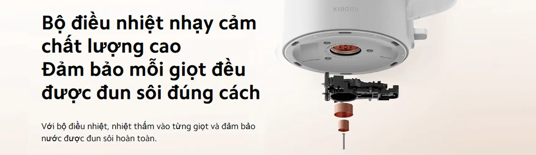 Một điểm nổi bật của ấm đun nước Xiaomi Electric Kettle 2 Lite nằm ở bộ điều nhiệt có độ nhạy cao, được sản xuất từ vật liệu chất lượng. Bộ phận này giúp kiểm soát nhiệt độ chính xác, đảm bảo nước được đun sôi hoàn toàn và nhiệt lan tỏa đều trong suốt quá trình làm nóng. Nhờ đó, ấm hạn chế tình trạng nước chưa đạt mức nhiệt cần thiết, góp phần nâng cao hiệu quả sử dụng. Đồng thời, việc kiểm soát nhiệt ổn định còn giúp bảo toàn chất lượng nước, mang đến sự an tâm cho người dùng khi sử dụng hằng ngày.