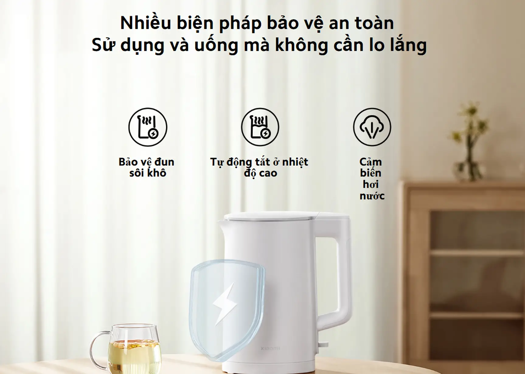 Xiaomi Electric Kettle 2 Lite được trang bị hệ thống bảo vệ an toàn đa lớp, giúp người dùng yên tâm trong quá trình sử dụng. Sản phẩm đã trải qua quy trình kiểm tra nghiêm ngặt với hơn 10.000 lần thử nghiệm về độ bền và độ tin cậy theo thông tin từ nhà sản xuất. Ấm tích hợp các tính năng như bảo vệ khi đun cạn nước, tự động ngắt khi nhiệt độ quá cao và cảm biến hơi nước, góp phần đảm bảo thiết bị vận hành ổn định. Nhờ đó, các rủi ro tiềm ẩn được hạn chế tối đa, mang lại sự an tâm khi sử dụng hằng ngày.