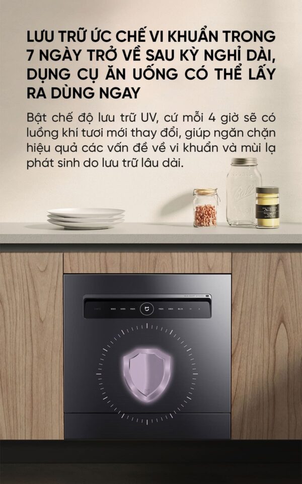 Kích hoạt chế độ lưu trữ UV thông minh, máy sẽ tự động thay luồng khí tươi sau mỗi 4 giờ, giúp ức chế vi khuẩn và khử mùi hiệu quả. Dụng cụ ăn uống vẫn sạch sẽ và an toàn suốt 7 ngày, ngay cả sau kỳ nghỉ dài – lấy ra dùng ngay không cần rửa lại.