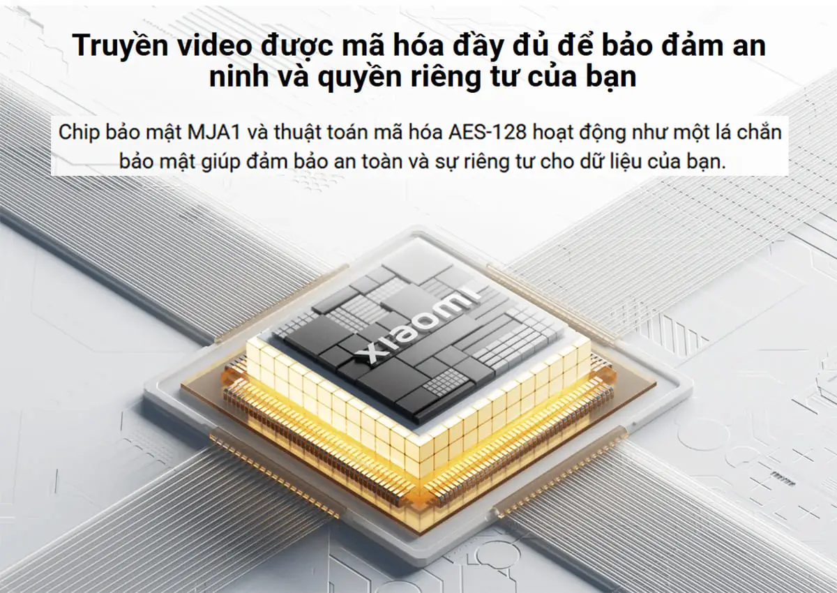 Camera Xiaomi 3MP BW300 nổi bật với chip bảo mật MJA1 và thuật toán AES-128 tiên tiến. Nhờ những công nghệ này, dữ liệu ghi hình của bạn được bảo vệ tối đa, đảm bảo an toàn và tránh bị xâm nhập hay đánh cắp.