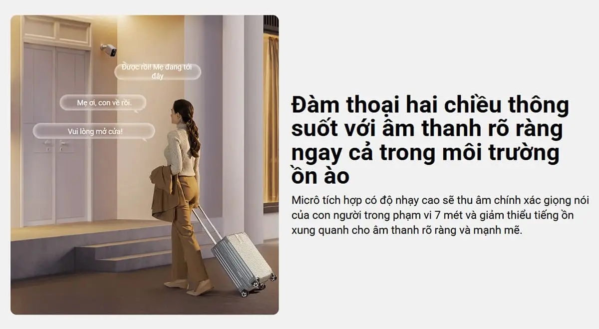 Micro tích hợp trong camera Xiaomi 3MP BW300 có độ nhạy cao, giúp thu âm giọng nói rõ ràng và sắc nét. Đồng thời, công nghệ giảm tiếng ồn xung quanh cũng được áp dụng, đảm bảo cuộc trò chuyện diễn ra mượt mà, rõ ràng ngay cả trong môi trường ồn ào.