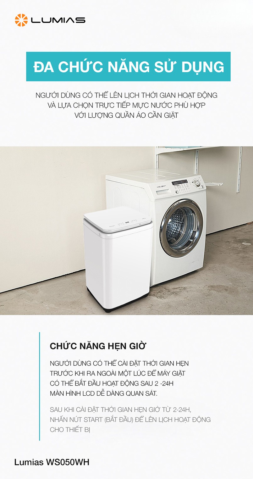 Máy giặt mini chức năng giặt nhiệt độ cao Lumias WS050WH thiết kế an toàn và tiện lợi