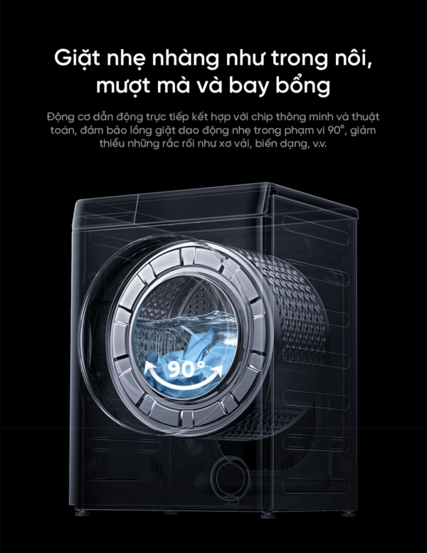 Mang đến trải nghiệm giặt giũ yên tĩnh và dễ chịu nhờ công nghệ dẫn động từ tính treo của động cơ dẫn động trực tiếp. Cơ chế quay êm ái giúp giảm ma sát, hạn chế tiếng ồn tối đa, cho phép bạn thoải mái đọc sách, học tập hoặc nghỉ ngơi ngay cả khi máy đang hoạt động, tận hưởng cuộc sống sạch sẽ và tĩnh lặng hơn mỗi ngày.