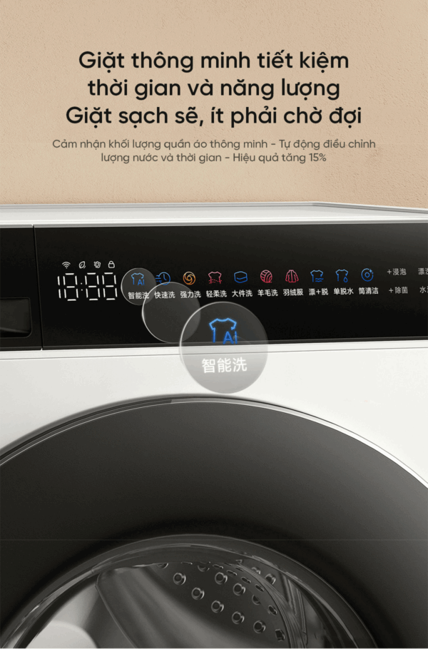 Máy giặt Mijia ứng dụng công nghệ giặt thông minh giúp tiết kiệm tối đa thời gian và năng lượng. Hệ thống cảm biến tự động nhận biết khối lượng quần áo, từ đó điều chỉnh lượng nước và thời gian giặt phù hợp, đảm bảo giặt sạch hiệu quả mà vẫn tiết kiệm. Nhờ tối ưu chu trình thông minh, hiệu suất giặt tăng tới 15%, giúp bạn có quần áo sạch sẽ hơn mà không cần phải chờ đợi lâu.