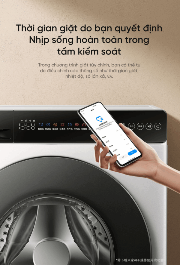 Máy giặt Mijia cho phép bạn chủ động kiểm soát hoàn toàn nhịp sống của mình với chế độ giặt tùy chỉnh linh hoạt. Trong chương trình này, người dùng có thể tự do điều chỉnh các thông số như thời gian giặt, nhiệt độ nước hay số lần xả, giúp quá trình giặt giũ phù hợp hơn với từng loại vải và nhu cầu sử dụng, mang lại sự tiện lợi và chủ động tối đa.