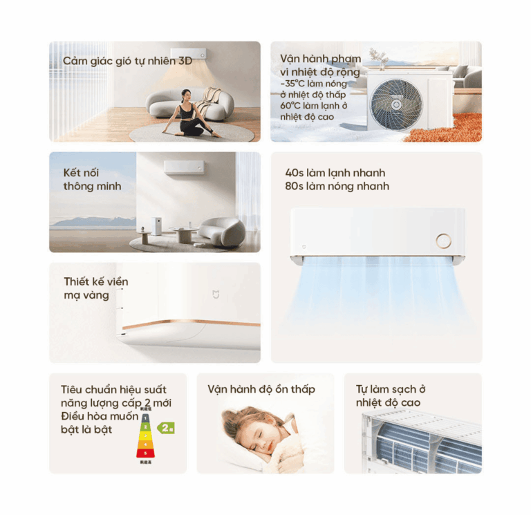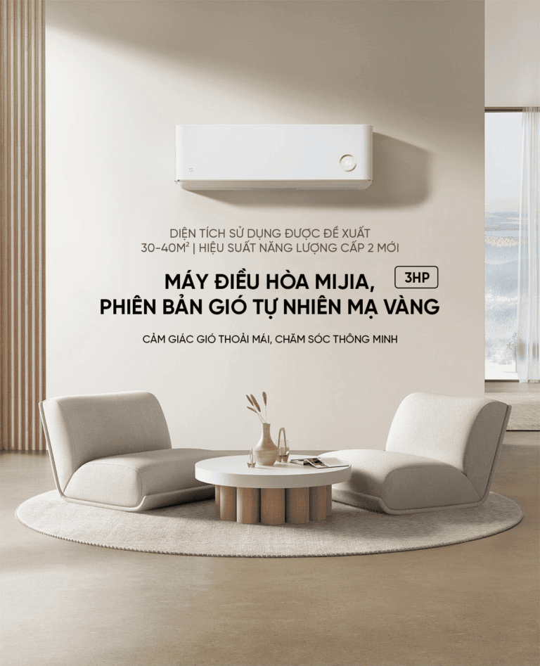 Máy điều hòa Mijia sở hữu thiết kế tinh tế với lớp mạ vàng sang trọng, mang đến không gian hiện đại và đẳng cấp cho mọi căn phòng. Với công suất mạnh mẽ 3HP, thiết bị phù hợp cho diện tích sử dụng từ 30 đến 40m², đáp ứng tốt nhu cầu làm mát cho phòng khách, văn phòng hoặc không gian sinh hoạt rộng.