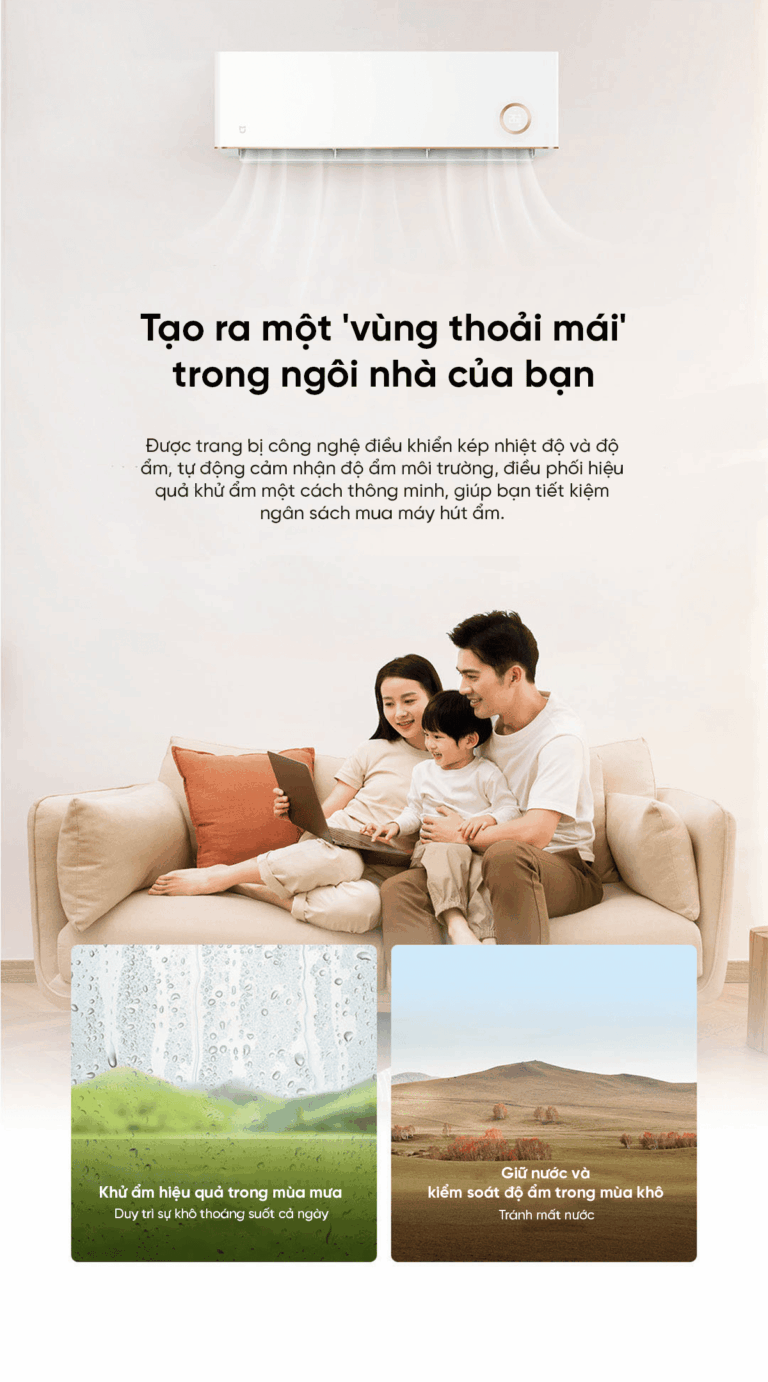 Tạo nên “vùng thoải mái” lý tưởng ngay trong ngôi nhà của bạn. Máy được trang bị công nghệ điều khiển kép nhiệt độ và độ ẩm, có khả năng tự động cảm nhận độ ẩm không khí và điều chỉnh khử ẩm thông minh. Nhờ đó, không gian luôn duy trì sự dễ chịu, khô ráo và bạn còn tiết kiệm được chi phí đầu tư cho một chiếc máy hút ẩm riêng biệt.