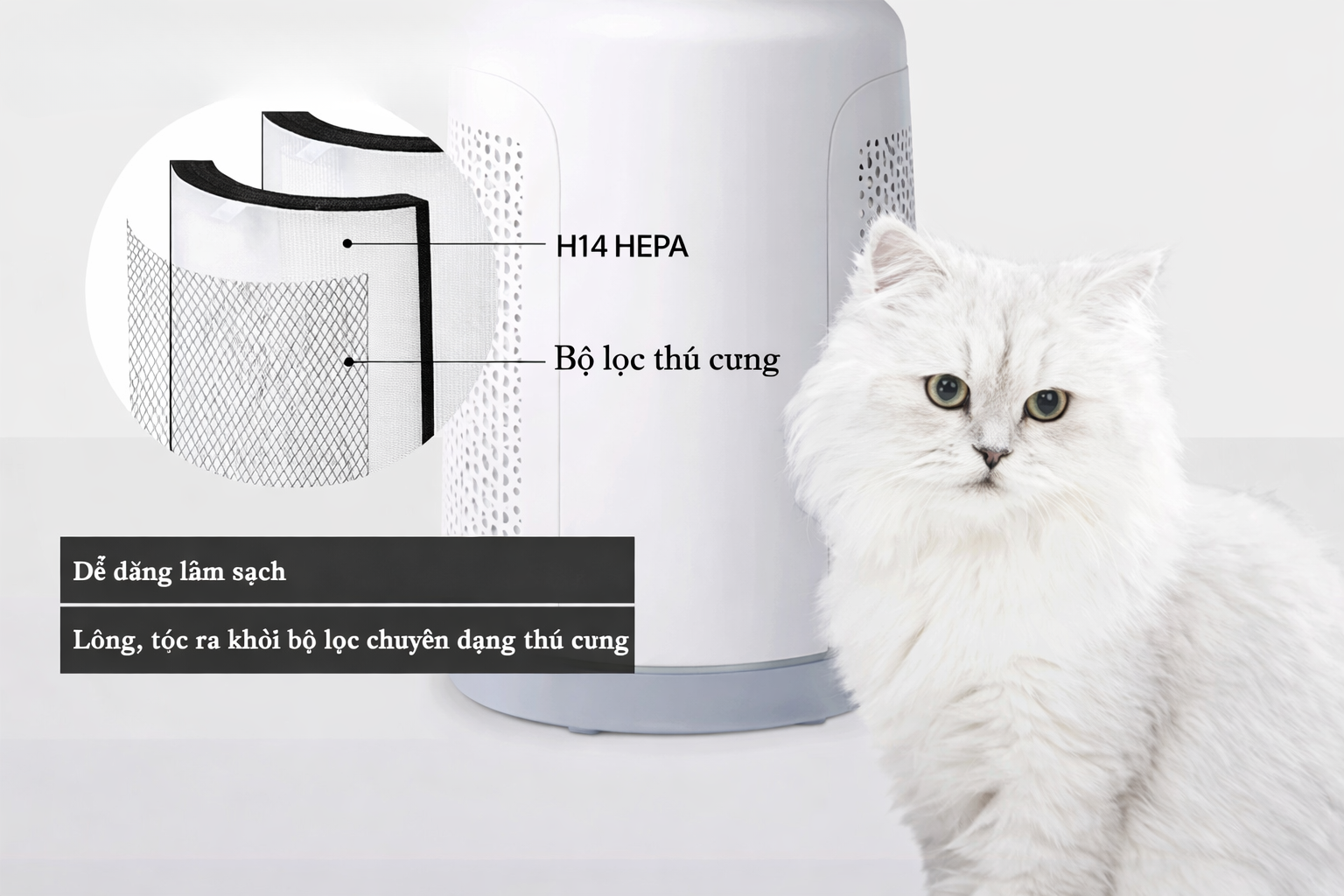 • Bộ lọc chuyên dụng để xử lý lông thú cưng