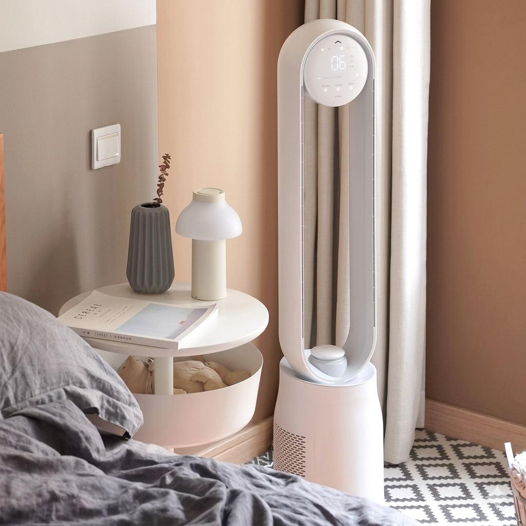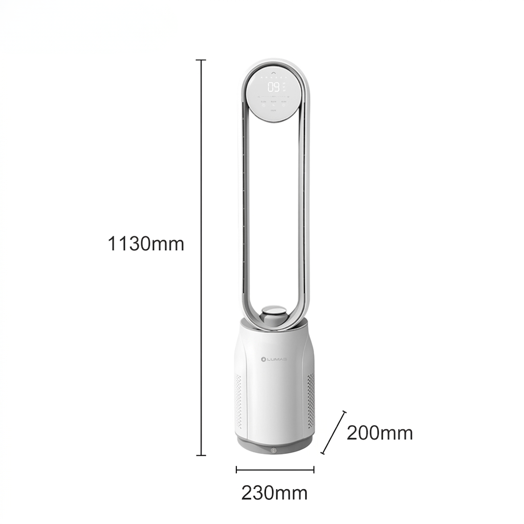 Quạt không cánh Lumias T08 Plus gây ấn tượng với thiết kế hiện đại, tông màu trắng thanh lịch kết hợp hệ thống đèn LED đổi màu độc đáo, tạo điểm nhấn sang trọng cho không gian sống. Điểm nổi bật là thiết kế không cánh với khe gió siêu nhỏ chỉ 2mm, đảm bảo an toàn tối đa, đặc biệt phù hợp cho gia đình có trẻ nhỏ hoặc thú cưng. Phần vỏ được làm từ nhựa ABS cao cấp, bền bỉ và dễ vệ sinh nhờ bề mặt nhẵn mịn. Ngoài ra, bảng điều khiển dạng tròn lấy cảm hứng từ mặt trăng với ánh sáng dịu nhẹ, giúp thao tác dễ dàng ngay cả khi thiếu ánh sáng.