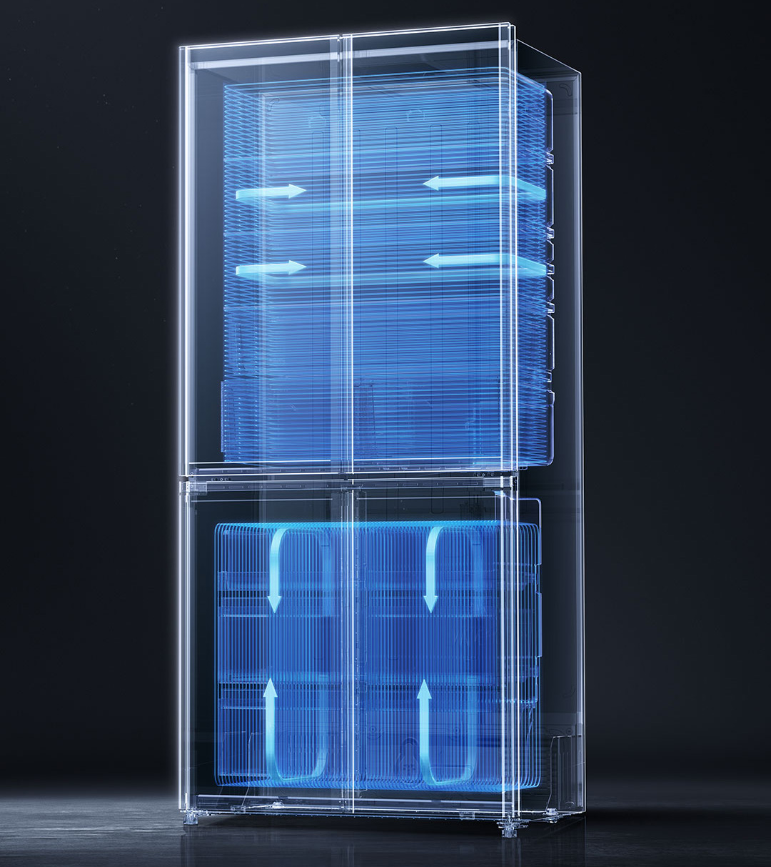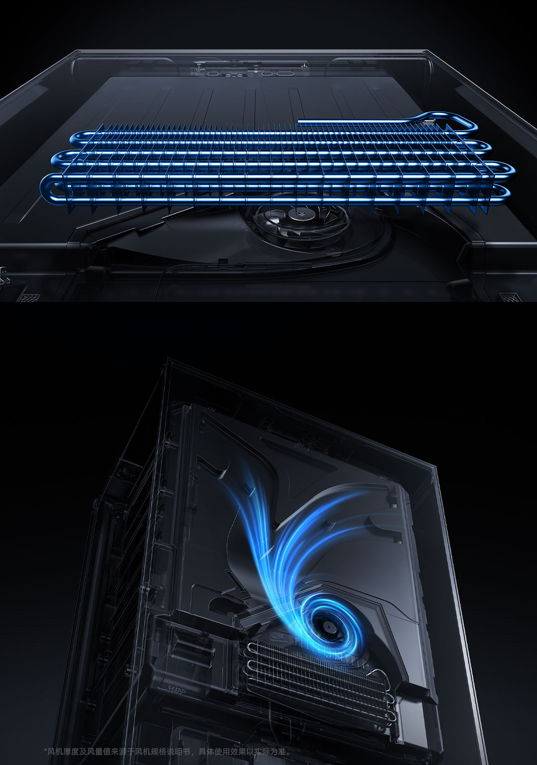 Quạt gió của tủ Xiaomi Mijia 508L Pro siêu mỏng, chỉ dày 20mm nhưng vẫn đảm bảo độ bền và hiệu suất tối ưu. Quạt cho ra lưu lượng khí lớn 1,094 khối khí/phút, lưu chuyển không khí đều và nhanh chóng, duy trì độ tươi cho thực phẩm.