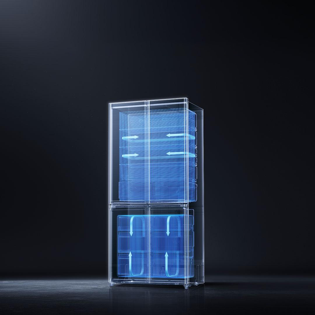 Tủ lạnh Xiaomi Mijia 508L Pro 2025 mới có nâng cấp lớn về hiệu suất bảo quản độ tươi. Với hệ thống làm lạnh kép, hai quạt gió độc lập cho phép điều khiển nhiệt độ ngăn mát và ngăn đông riêng biệt, giải quyết triệt để vấn đề lẫn mùi giữa ngăn mát và ngăn đông, giữ thức ăn tươi mà không mất mùi vị thực phẩm.