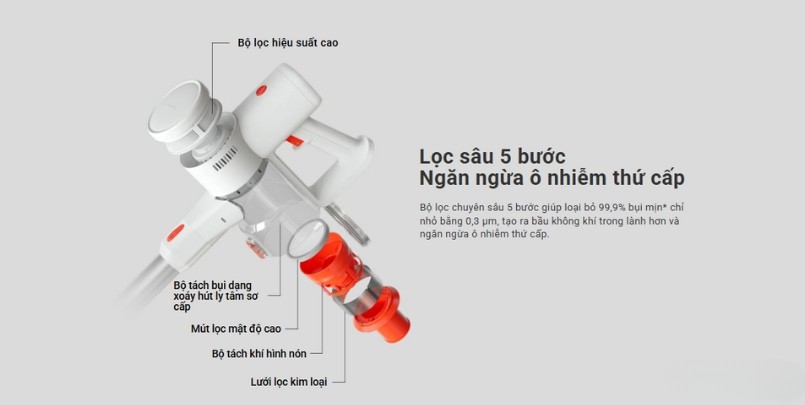 Máy hút bụi cầm tay Xiaomi Vacuum Cleaner G20 Lite có hệ thống lọc 5 bước