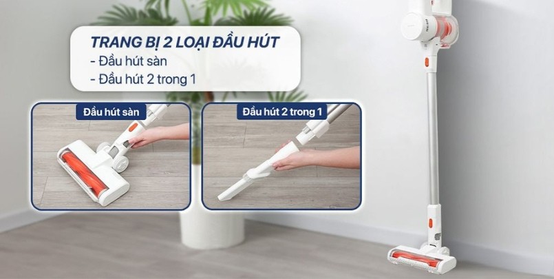 • Đầu hút sàn: Thiết kế chuyên dụng để làm sạch các loại sàn cứng như gạch, gỗ và cả thảm mỏng.