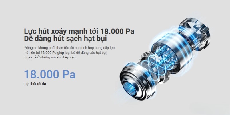 Lực hút lên tới 18000Pa, làm sạch hiệu quả