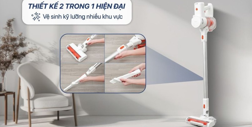 • Đầu hút 2 trong 1: Kết hợp đầu hút khe và đầu hút bàn chải, thuận tiện dọn dẹp những vị trí khó tiếp cận như ghế sofa, các ngóc ngách nhỏ hoặc bề mặt cần làm sạch nhẹ nhàng mà không gây trầy xước.