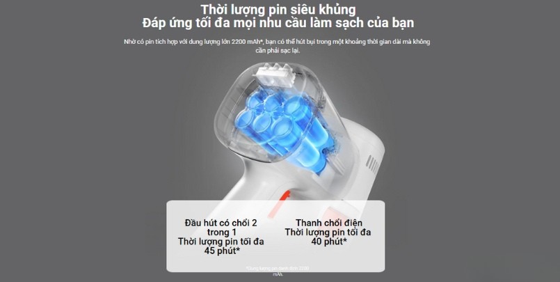 Dung lượng pin 2200mAh, sử dụng liên tục trong vòng 45 phút