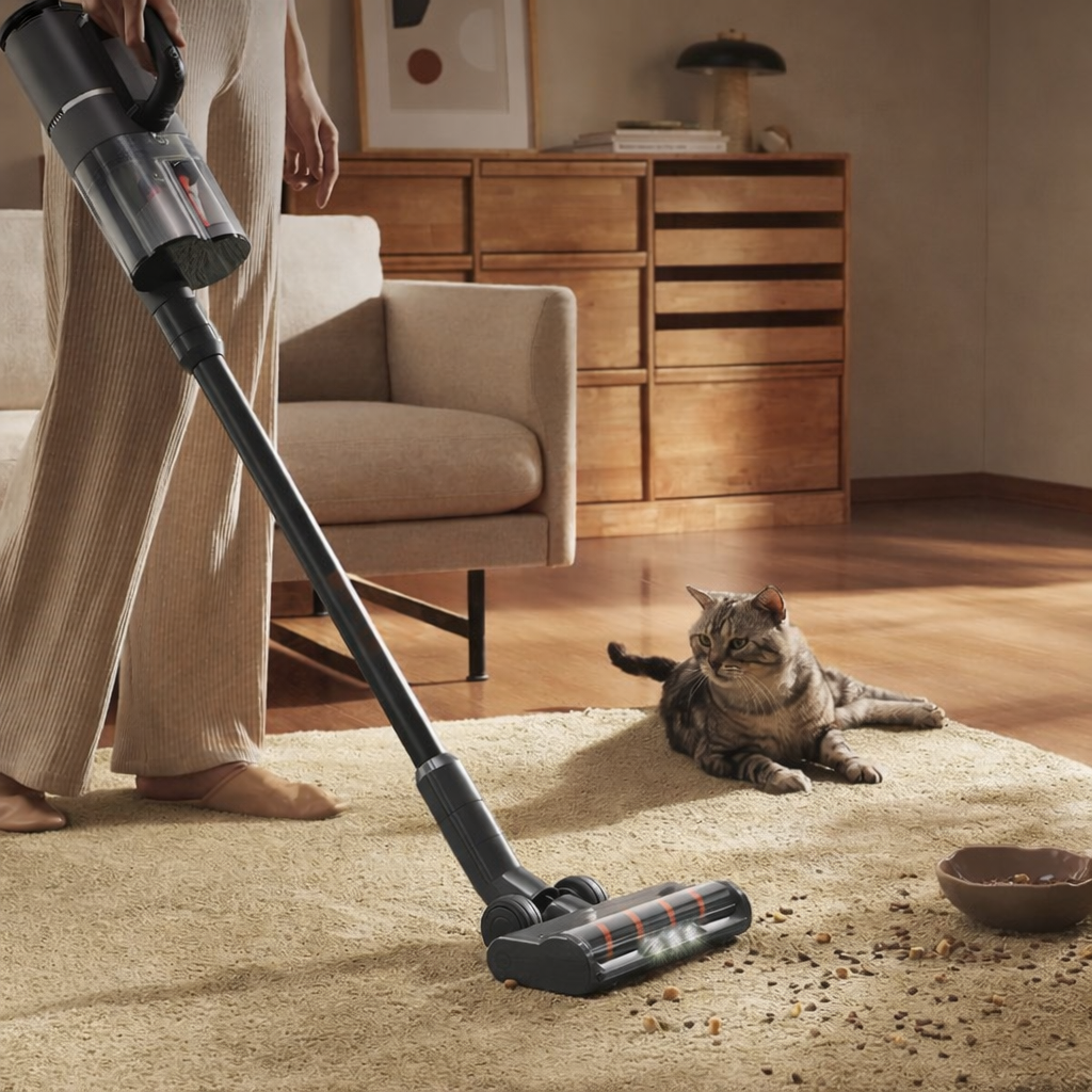 Kết hợp cùng lực hút siêu mạnh 18.000Pa, thiết bị giúp hạn chế tình trạng cuộn rối tóc và lông, đồng thời hút sạch lông thú cưng và bụi bẩn bám trên con lăn, mang lại hiệu quả vệ sinh tối ưu cho không gian sống.
