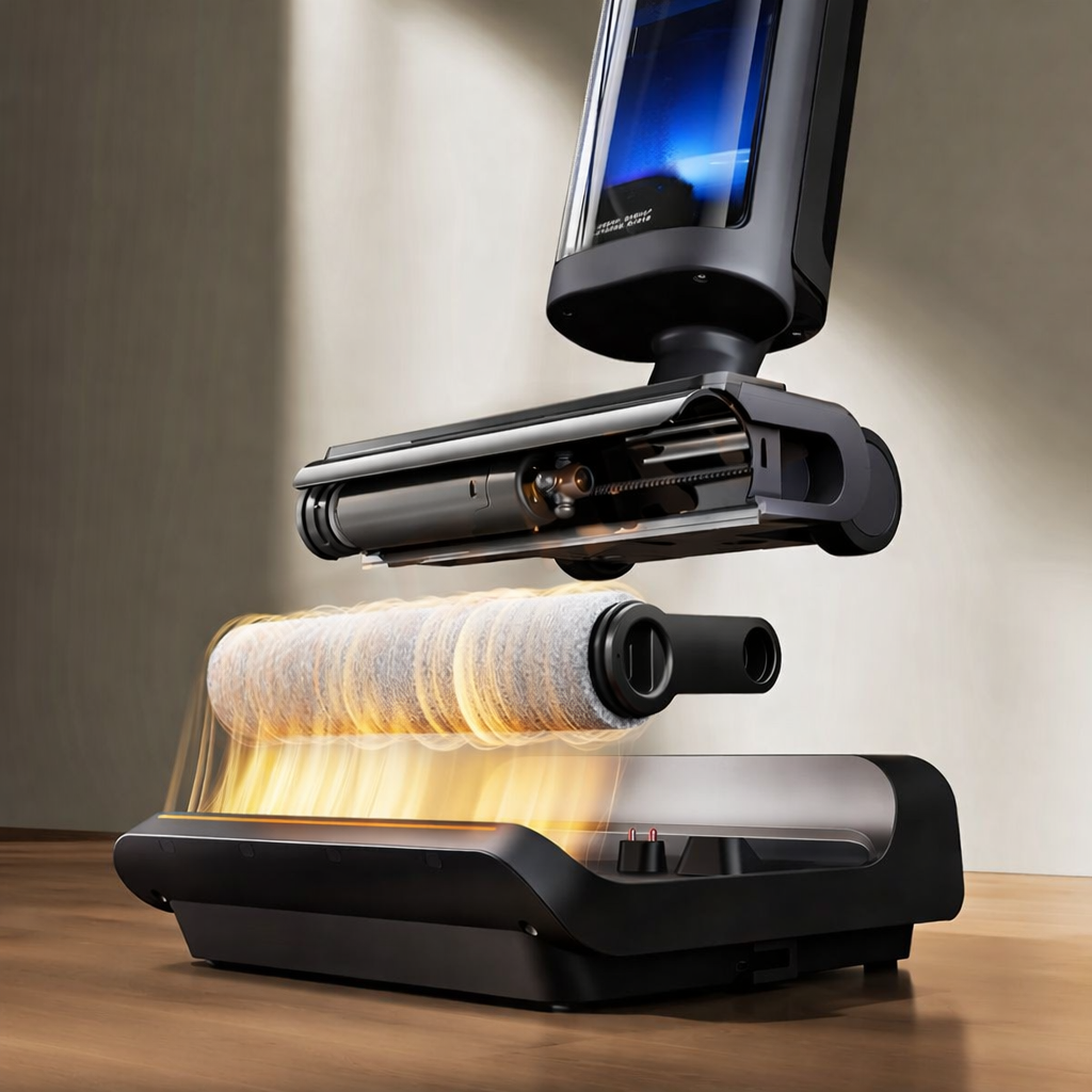 Mijia 3 Max được tích hợp hệ thống tự giặt và sấy khô con lăn lau tiện lợi. Máy hỗ trợ khử trùng và tự làm sạch hoàn toàn: sau khi con lăn được rửa bằng nước, thiết bị sẽ tự động sấy khô bằng luồng khí nóng, giúp bạn không cần phải tháo rửa hay phơi khô thủ công như các dòng máy hút bụi khô ướt truyền thống.