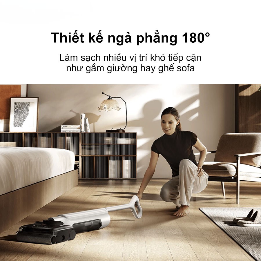 Máy hút bụi lau nhà Xiaomi Truclean W30 Pro sở hữu thiết kế mỏng nhẹ cùng khả năng nằm phẳng linh hoạt 180°, dễ dàng luồn sâu vào gầm giường hay ghế sofa lên đến 104cm, giúp loại bỏ bụi bẩn ở những vị trí khó tiếp cận nhất.