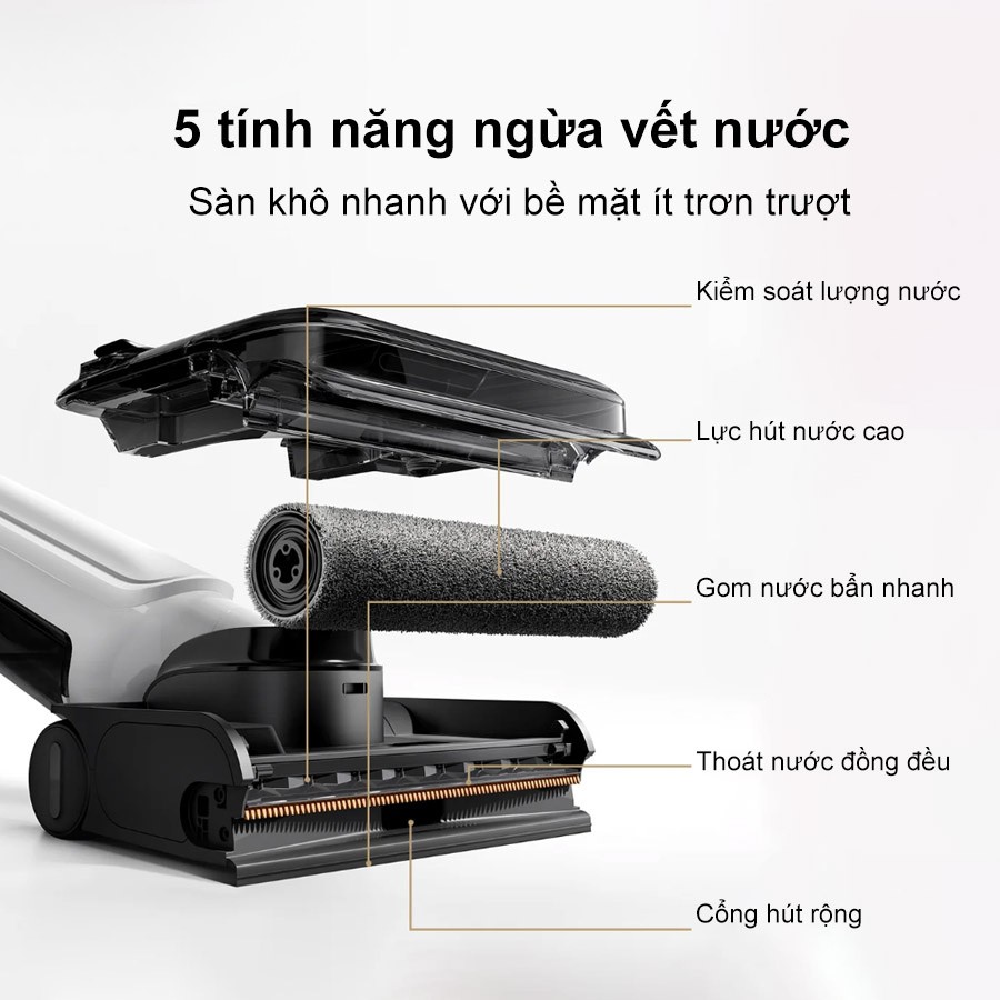 Hút nước mạnh mẽ: Cổng hút rộng kết hợp lực hút cao, giảm 62% lượng nước thừa, giúp sàn khô nhanh và ít trơn trượt hơn.
