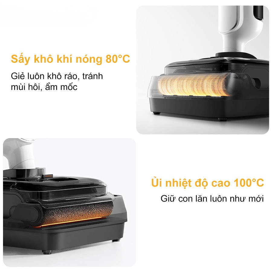 Máy hút bụi lau sàn Xiaomi Truclean W30 Pro trang bị tấm gia nhiệt 100°C, giúp “ủi” con lăn bằng áp lực vi mô trong chế độ sấy nóng. Kết hợp cơ chế xoay tiến–lùi 360°, con lăn được sấy khô nhanh, giữ độ bông xốp và sạch sẽ sau mỗi lần sử dụng. Nhờ đó, thiết bị luôn đảm bảo hiệu suất tối ưu và kéo dài tuổi thọ con lăn.