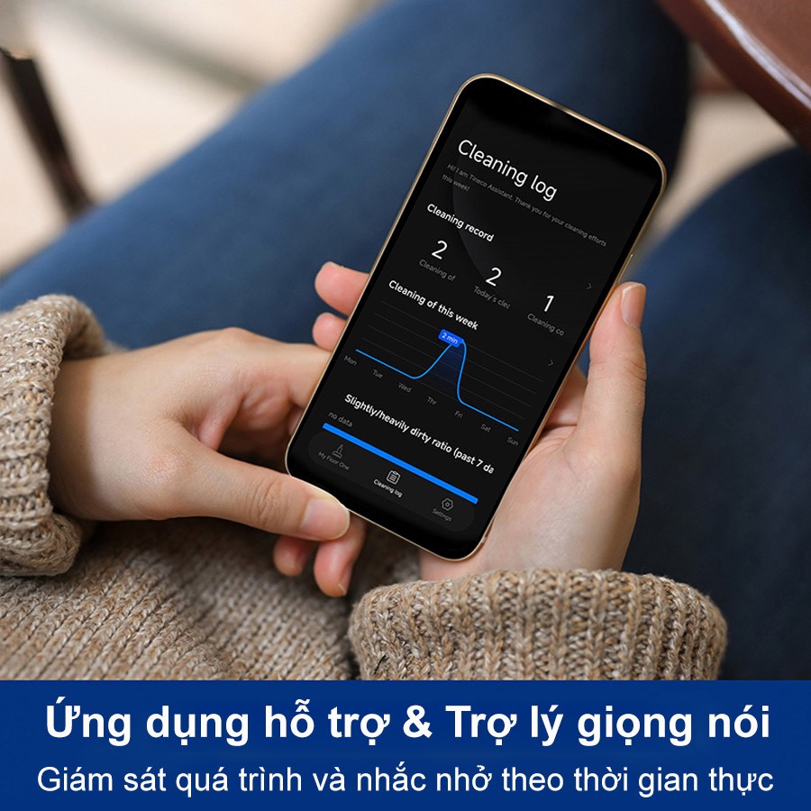 Máy hút bụi lau sàn khô ướt Tineco FLOOR ONE S6 Stretch Extreme cho phép kết nối với ứng dụng di động, giúp người dùng dễ dàng theo dõi tình trạng hoạt động, nhận hướng dẫn và tùy chỉnh các cài đặt chỉ với vài thao tác đơn giản. Bên cạnh đó, máy còn được trang bị màn hình LED hiển thị thông tin theo thời gian thực cùng trợ lý giọng nói thông minh, hỗ trợ điều khiển rảnh tay, thuận tiện ngay cả khi đang dọn dẹp hoặc không thể quan sát trực tiếp thiết bị.