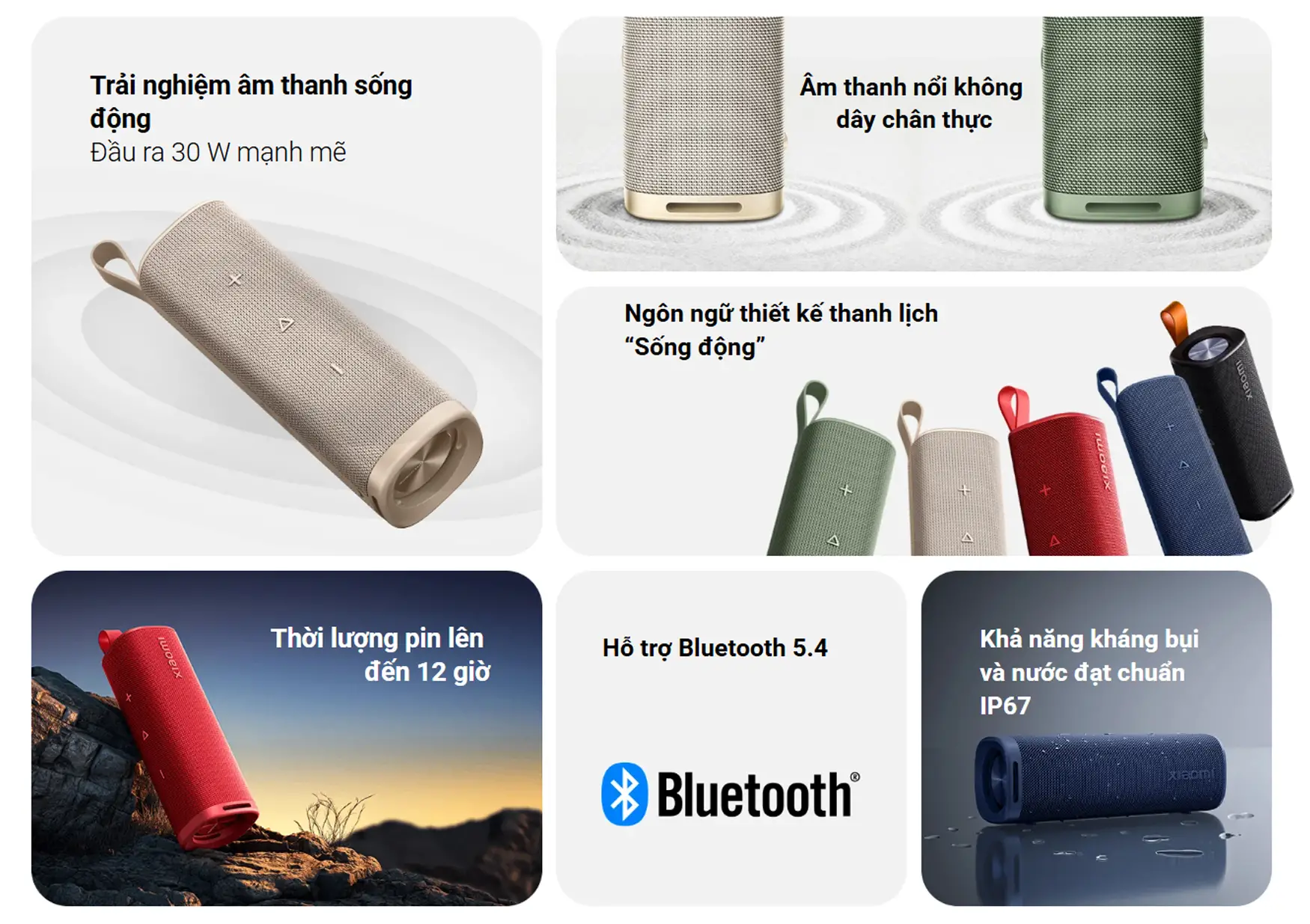Loa Bluetooth Xiaomi Sound Outdoor 30W là thiết bị di động kết hợp hoàn hảo giữa thiết kế hiện đại, âm thanh mạnh mẽ và nhiều tính năng tiện ích. Với công suất 30W, thời lượng pin 12 giờ, khả năng kháng bụi nước IP67 và kết nối Bluetooth 5.4, loa mang đến trải nghiệm nghe nhạc ổn định và chất lượng. Lấy cảm hứng từ sự sống động, Xiaomi Sound Outdoor không chỉ là thiết bị phát nhạc mà còn là người bạn đồng hành lý tưởng, khuấy động mọi không gian và truyền tải trọn vẹn từng nhịp điệu cuộc sống.