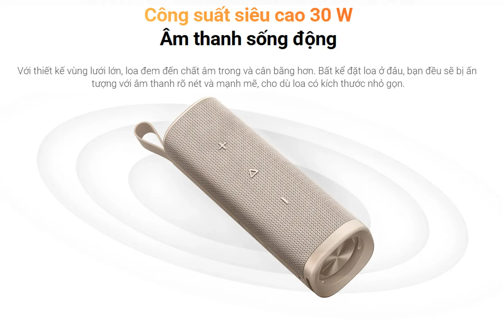 Thiết kế vùng lưới loa lớn không chỉ mang tính thẩm mỹ mà còn tối ưu hóa khả năng khuếch tán âm thanh, giúp chất âm luôn trong trẻo, cân bằng và lan tỏa đều ra mọi hướng. Dù đặt loa ở bất kỳ vị trí nào, người dùng cũng dễ dàng cảm nhận được âm thanh mạnh mẽ, rõ nét đến từng chi tiết trong bản nhạc – điều mà nhiều loa nhỏ gọn khác khó làm được. Với công suất 30W, Xiaomi Sound Outdoor đảm bảo âm nhạc của bạn luôn nổi bật, không bị lu mờ trước tiếng ồn xung quanh.