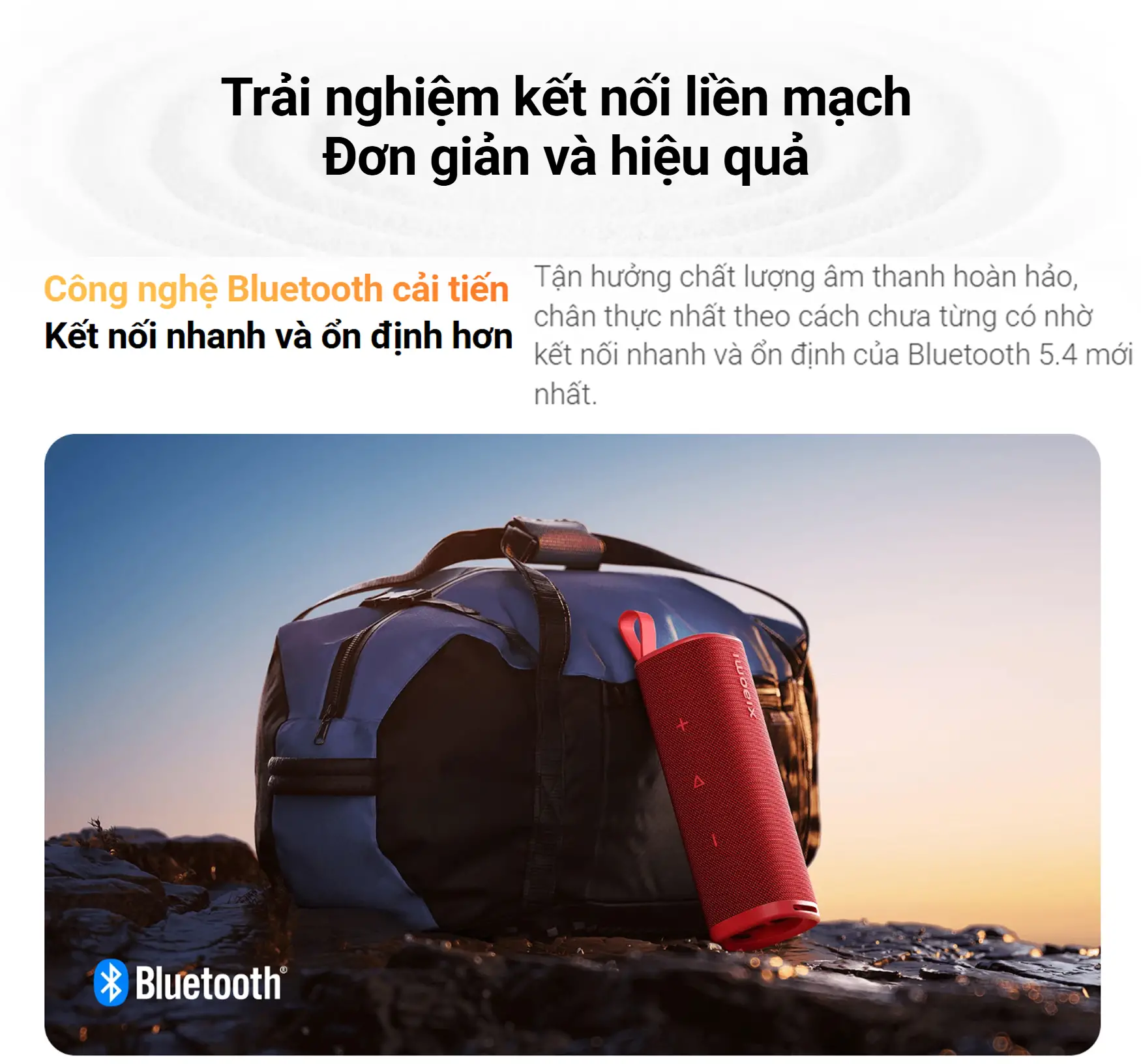 Trải nghiệm nghe nhạc không dây chỉ thực sự trọn vẹn khi kết nối ổn định và mượt mà. Loa Bluetooth Xiaomi Sound Outdoor 30W được trang bị công nghệ Bluetooth 5.4 mới nhất, mang lại nhiều cải tiến so với các thế hệ trước. Nhờ đó, việc ghép nối diễn ra nhanh chóng, tín hiệu ổn định ở phạm vi xa hơn và tiết kiệm năng lượng hơn. Người dùng sẽ tận hưởng âm thanh chân thực, sống động mà không lo trễ tiếng hay mất kết nối đột ngột. Ngay cả khi điện thoại đặt trong túi xách hay cách loa vài mét, chất lượng âm thanh vẫn duy trì ở mức tối ưu.