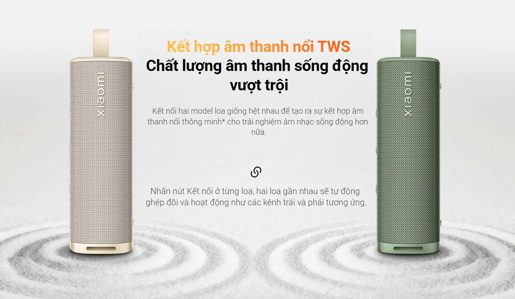 Loa Bluetooth Xiaomi Sound Outdoor còn được trang bị tính năng kết nối âm thanh nổi thông minh (TWS). Khi sở hữu hai loa giống nhau, bạn chỉ cần nhấn nút ghép nối trên mỗi thiết bị, chúng sẽ tự động kết hợp thành hai kênh trái và phải riêng biệt. Nhờ đó, âm thanh trở nên sống động và có chiều sâu, giúp bạn cảm nhận rõ sự di chuyển giữa hai kênh, mang đến trải nghiệm nghe như đang tham dự một buổi hòa nhạc thực thụ. Tính năng này đặc biệt lý tưởng khi xem phim hoặc thưởng thức những bản nhạc có hiệu ứng stereo phức tạp.
