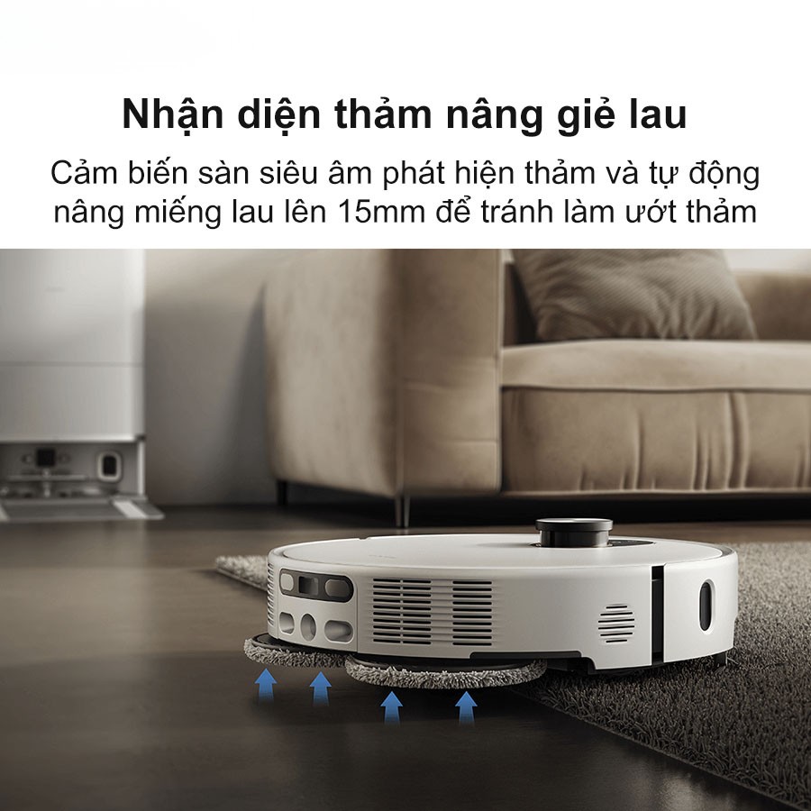 Nhờ sự linh hoạt này, robot có thể xử lý hiệu quả nhiều bề mặt khác nhau, vừa giữ thảm khô ráo vừa đảm bảo sàn nhà luôn sạch sẽ.