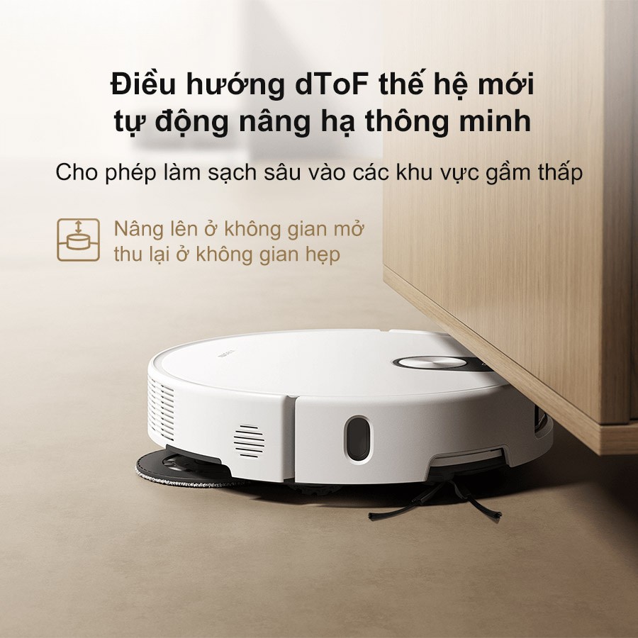 Robot được trang bị điều hướng dToF thế hệ mới, cho khả năng thu gọn và di chuyển thông minh hơn. Với lực hút 20.000Pa mạnh mẽ, thiết bị dễ dàng xử lý mọi loại bụi bẩn, từ bụi mịn đến lông thú hay các vết bẩn lớn.