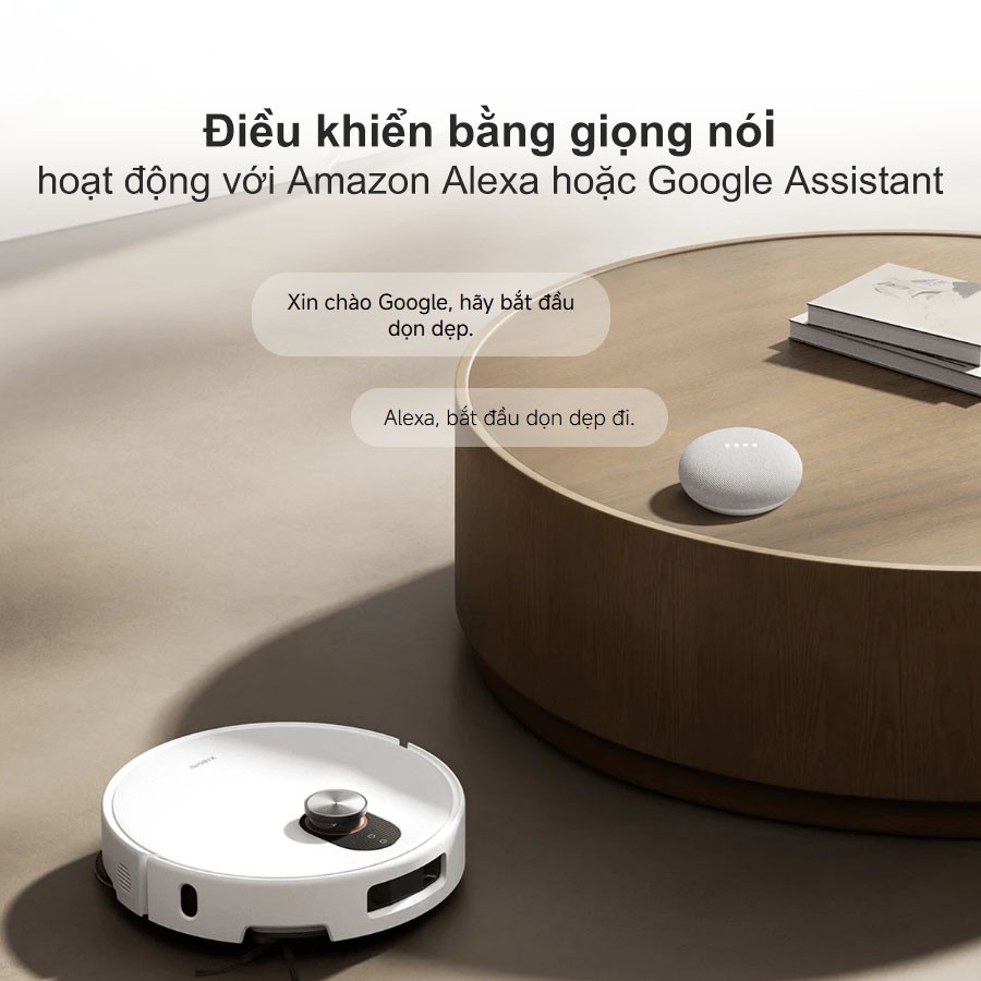 Robot hút bụi lau nhà Xiaomi Vacuum 5 còn hỗ trợ Google Assistant và Amazon Alexa, cho phép bạn điều khiển bằng các câu lệnh giọng nói đơn giản. Nhờ đó, việc dọn dẹp trở nên tiện lợi, nhanh chóng và hiện đại hơn rất nhiều.